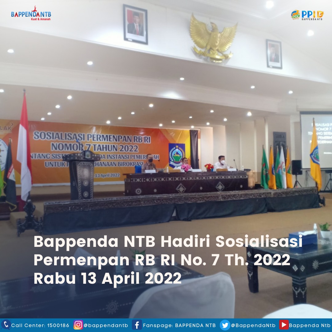 Kasubag Umum dan Kepegawaian Bappenda NTB Poppy Pujawati, SE. MM beserta staff menghadiri sosialisasi Permenpan RB RI Nomor 7 Tentang sistem instansi pemerintah untuk penyederhanaan birokrasi pada Rabu (13/04/2022).